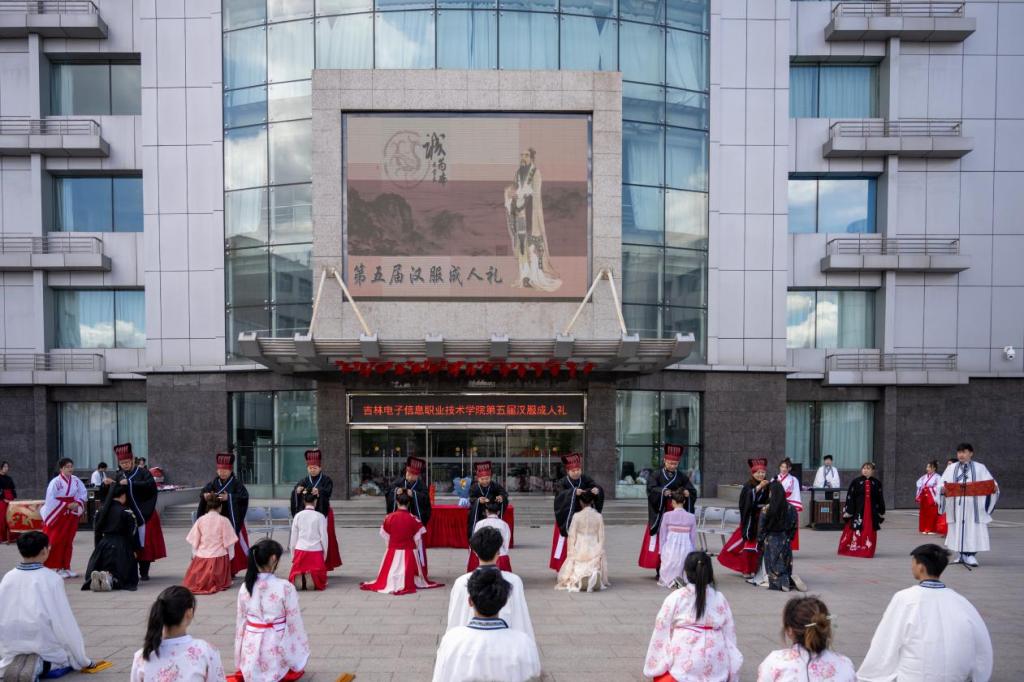 5月15日,学校第五届学生汉服成人礼活动在汉阳校区举行。学校党委书记何晓杰、副校长刘占文、副校长张晓娟及各二级学院党总支书记出席活动。 仪式分为八个部分:迎宾、就位、献花、冠笄礼、宣誓礼、正衣冠、授字和礼成。活动在司仪的吟诵中拉开序幕,充满了中华文化之风的浓厚氛围。由司仪宣布“甲辰年成人礼开始!”在击鼓和鸣钟声中,560名冠笄者有序入场。仪式过程中,师长们为冠笄者加冠加笄,接受成人礼的学生们向师长行礼,一拜一兴之间都流露着加冠笄者对师长、国家的感激与尊敬。最后,在参加冠笄礼青年学生的宣誓词中,结束了这场庄重典雅的成人礼。 本次成人礼活动是弘扬优秀传统文化和社会主义核心价值观系列活动之一,旨在引导青年学生培养心怀感恩、勇于担当、立志报国的优秀品格,成人礼既让学生们感受到了中国传统文化的魅力,更对学生进行了责任教育。 (供稿单位:创新创业与素质教育中心 初审:孟令飞 复审:刘莹 终审:汤海涛)