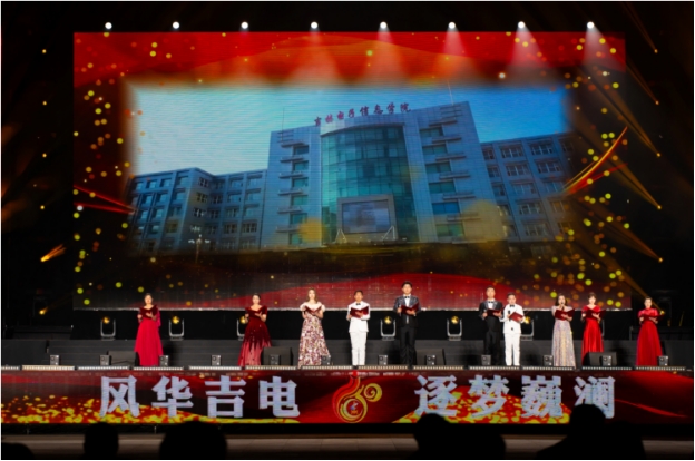 第三篇章《奋进·砥砺前行》由诗朗诵《七彩六十年 壮丽谱华章》、歌伴舞《天之大》、原创快板舞《吉电颂》组成。主要突出了60年来学校办学发展、人才培养的甲子篇章,精彩描述了新校区建设为学校高质量发展注入的新动能。