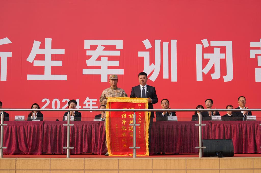 10月26日,学校在新山校区运动场举行2024级学生军训闭营仪式。学校党委书记何晓杰出席并检阅受训学生,校长曾繁明向承训部队赠送锦旗,党委副书记石洪发,纪委书记高楠,副校长于钧、刘占文,党委委员张爱军、汤海涛参加活动。闭营仪式由学生工作处处长赵晓峰主持。