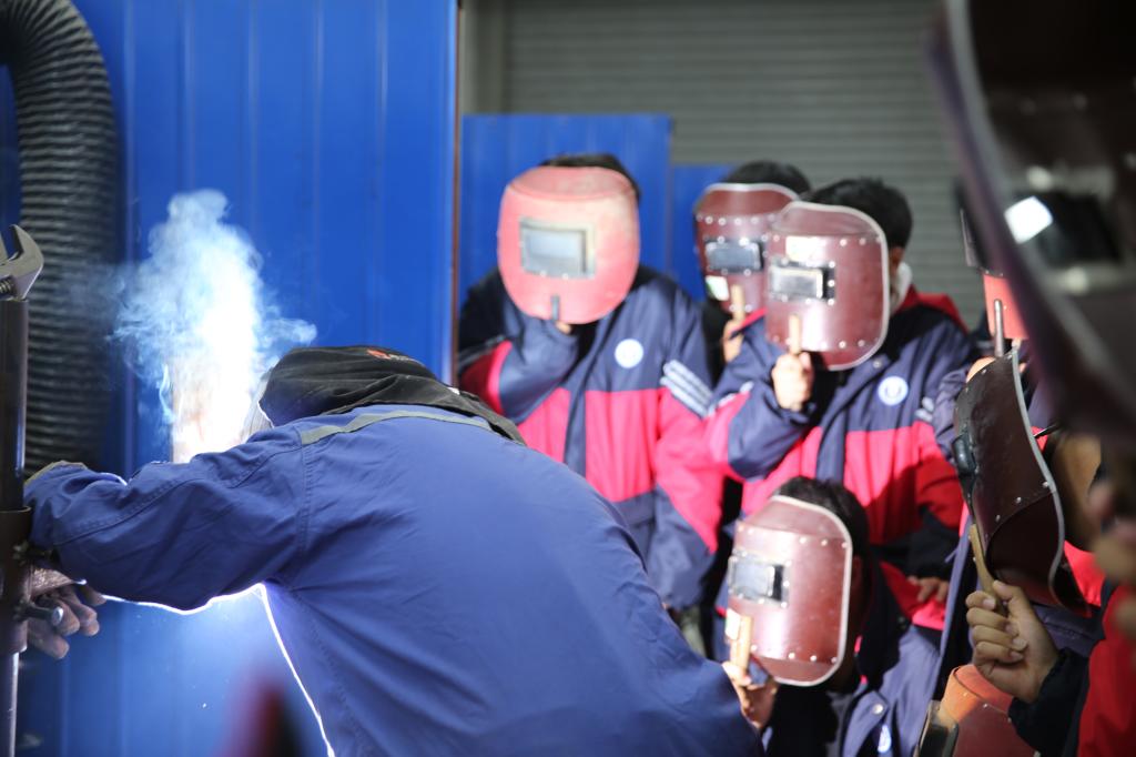 研学期间,师生们参观了校史馆,在焊接实训中心、汽车实训中心、高铁模拟仓、形体室等实训基地进行了现场实操体验。
