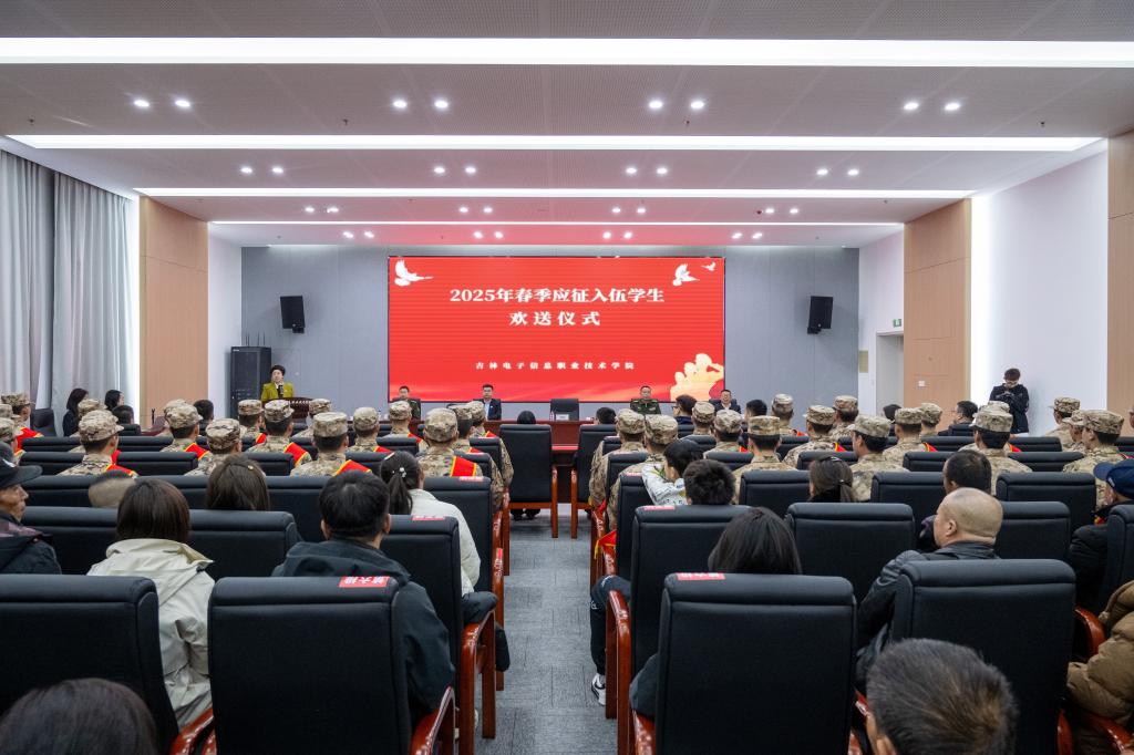 3月17日,我校在新山校区图书馆一楼会议室举行2025年春季应征入伍学生欢送仪式,学校党委书记何晓杰、校长曾繁明、党委副书记石洪发、吉林市龙潭区人武部上校部长娄磊、人武部上校政治委员吴晓龙出席仪式,新兵家长、学工人员及入伍新兵参加仪式,学校党委武装部部长孙凯主持会议。